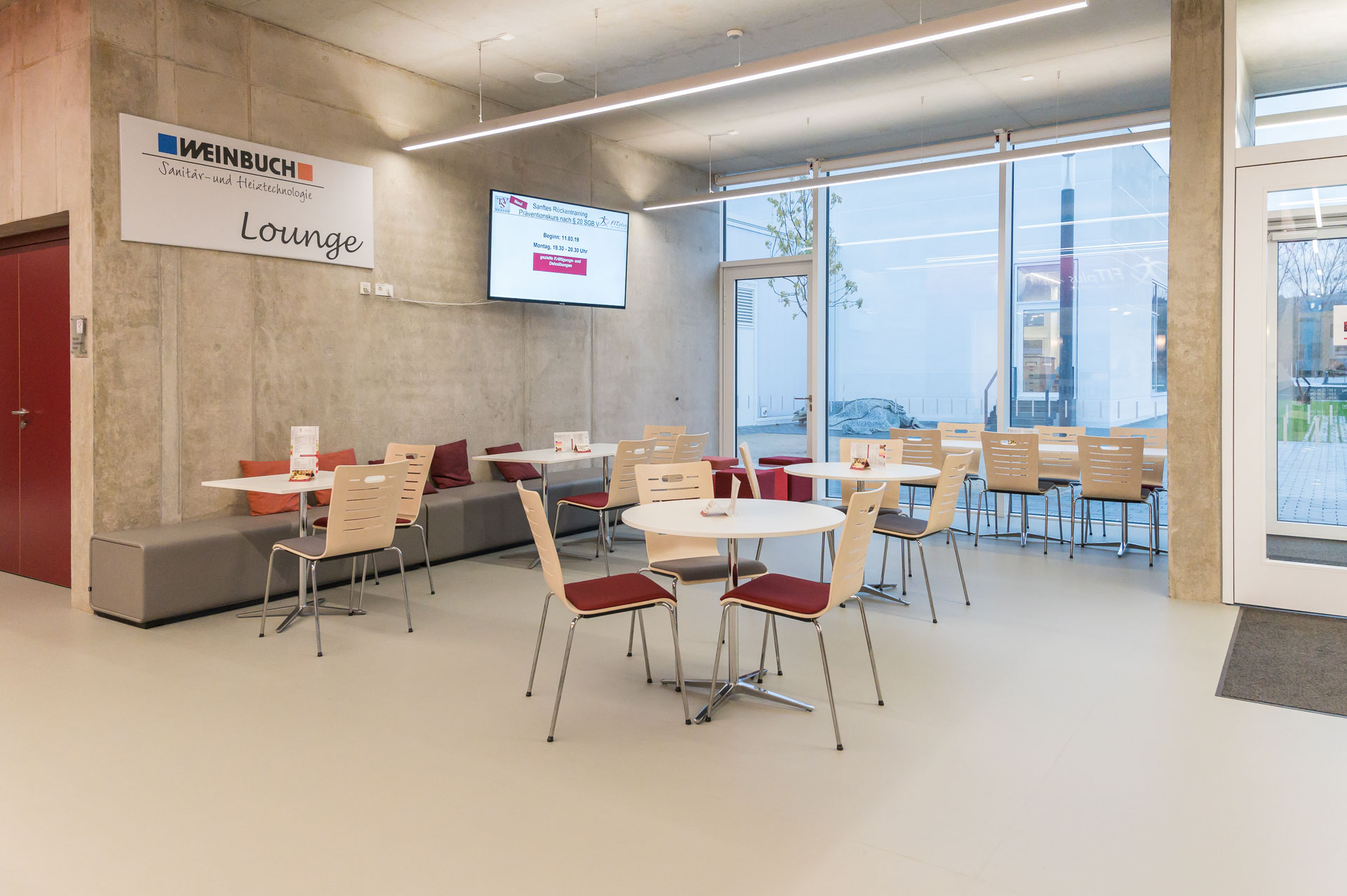 Ob vor dem Training, danach oder einfach zwischendurch – unsere gemütliche Weinbuch-Lounge ist der perfekte Platz zum Ankommen, Durchatmen und Quatschen. Bequeme Sitzplätze, eine einladende Theke und unser freundliches Team sorgen für ein entspanntes, familiäres Ambiente, in dem man sich sofort wohlfühlt.